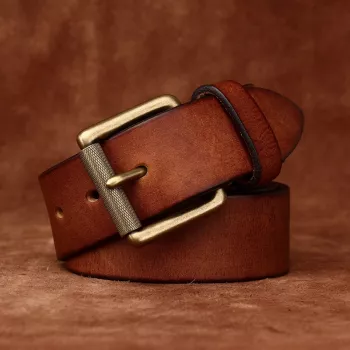 3.8CM Premium Cowhide Leather Belt with Copper Buckle for Men